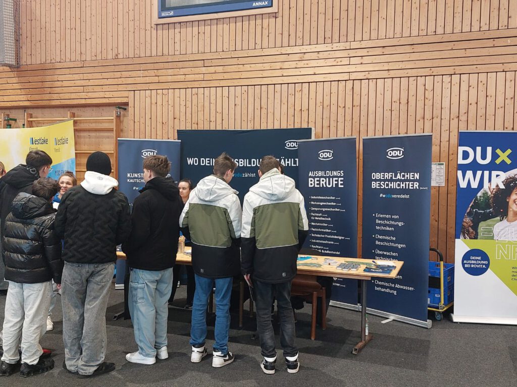 In persönlichen Gesprächen konnten die Jugendlichen Fragen stellen, Interesse zeigen und erste Erfahrungen im Kontakt mit Unternehmensvertreterinnen und -vertretern sammeln. Dabei erhielten sie wertvolle Rückmeldungen zu ihrem Auftreten und ihrer Gesprächsführung – eine wichtige Vorbereitung auf zukünftige Bewerbungs- und Messesituationen.